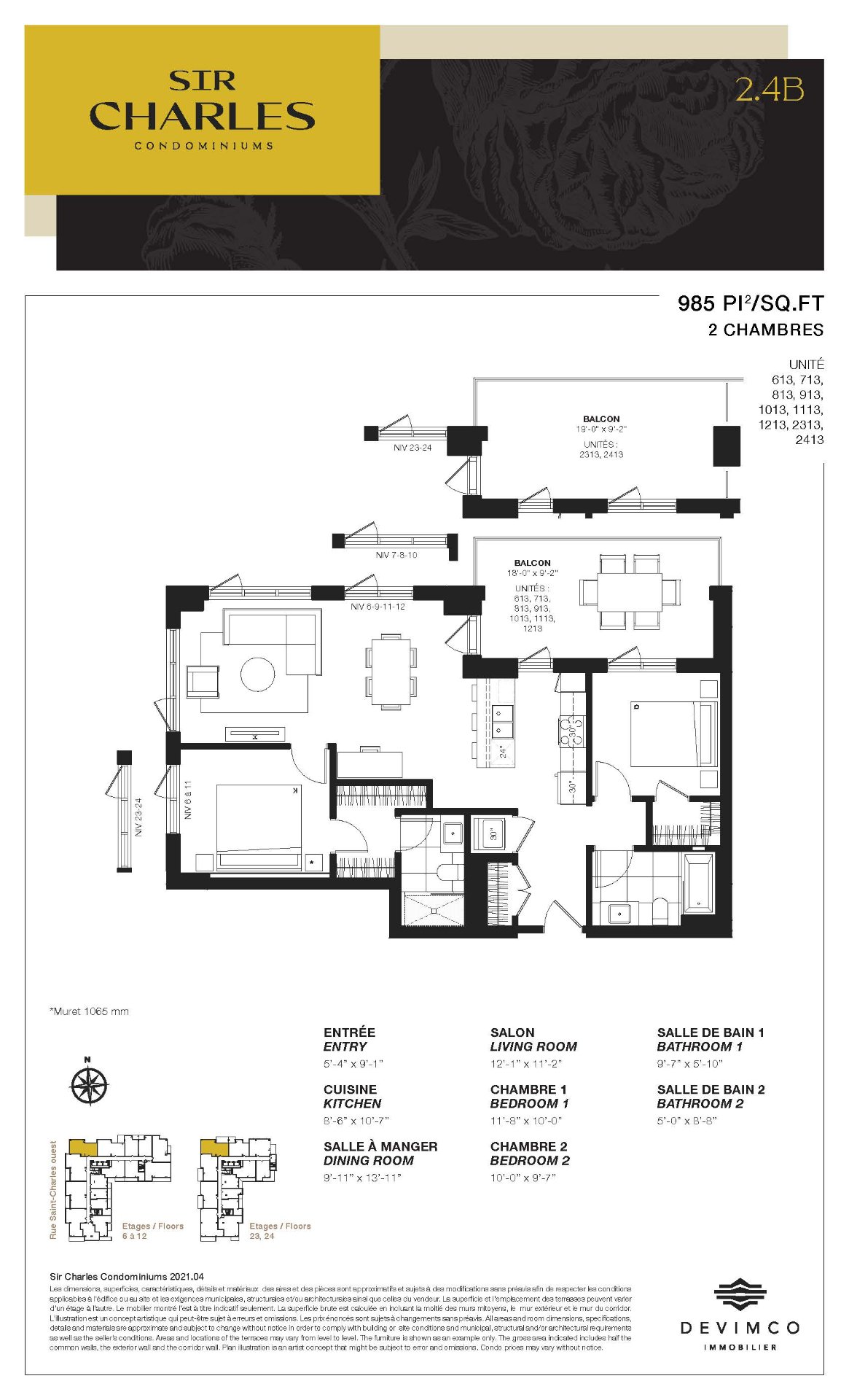 Exclusions : Storage space, parking, electric car terminal, washer, dryer, furniture and furnishings present in the condos, including those used for presentation purposes (model condo).